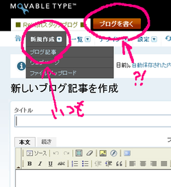 いつも、このブログを書くときは、専用のアドレスから管理用の画面にログインして、そこから新規作成のリンクにカーソルを合わせて表示される、「ブログ記事」のリンクをクリックした後で、記事の新規作成、投稿を行っていたのですが。
