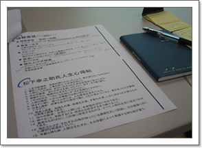 経験談も交えながらのお話は面白く、一部上場企業さんの内部のお話もちらっと顔をみせたりして、興味深く聞かせて頂きました。海外と日本とを比べ、「こうしたらもっと良くなると思う」所や、あるものを発明した人はこんな風に考えていたんだ。という格言を交えたお話は、普段は理想として頭の隅にしかないもので、改めて自分は何をどう考えて生きているだろうと考えさせられた講演会でした。