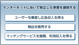 企業がインターネットをビジネスで活用する場合、大きく分けて2つに分類されます。1つはインターネットにおいて独立した事業を立てる事。もう1つは現在展開している事業のサポートになるようインターネットを活用する事です。2つの分類の中でビジネスに活用できる具体例を挙げます。